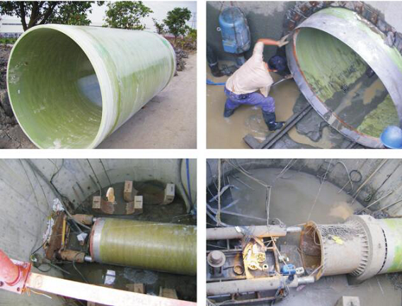 在长距离顶管应用中,通常会在管身处开设注浆孔,注浆孔一般设置成沿注浆断面圆周方向120度三点分布,注浆断面离管端位置根据工程实际情况而定。注浆孔一般为1/4-1”管螺纹不锈钢材质。每三节管道中有一节配置注浆孔。管线贯通后用不锈钢堵头实施封堵。