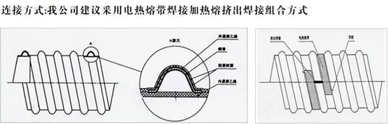 1、热熔带挤出焊接连接;2、卡箍(哈夫套)连接;3、热收缩管(带)连接